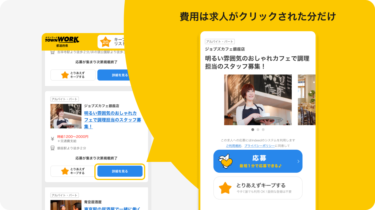 Indeed PLUSでは、クリック課金のため、求人がクリックされた分しか費用は発生しません。